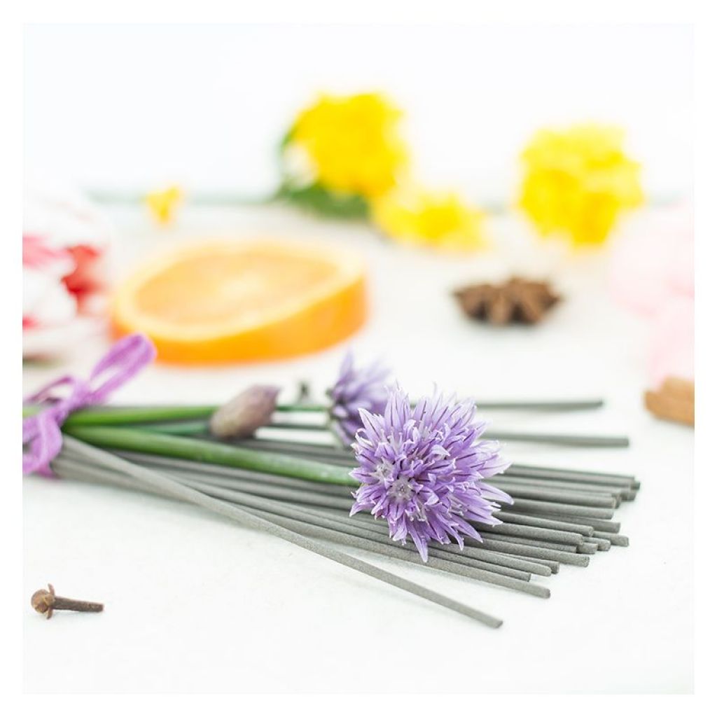 Los palitos se queman y dejan escapar muy poco humo al mismo tiempo que brindan un delicado aroma gourmet. Su composición a base de plantas reduce las emisiones de COV a casi cero.