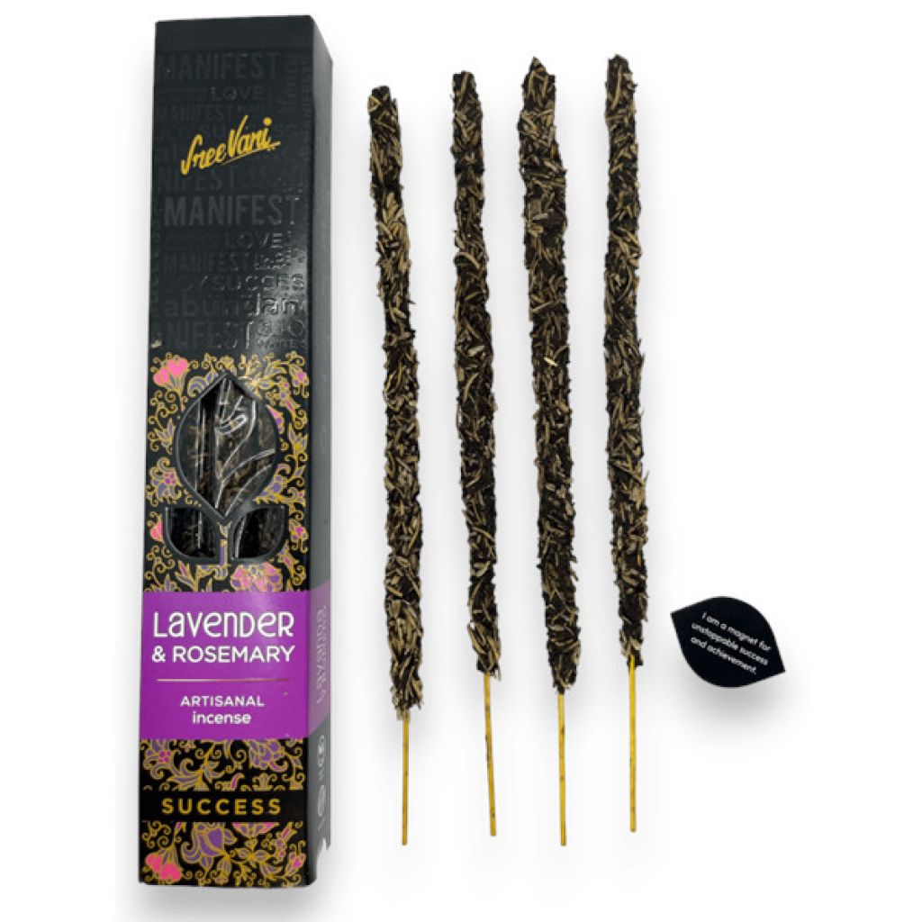 El Incienso Lavanda y Romero Éxito Manifest Sree Vani Lavander & Rosemary es un incienso artesanal elaborado con ingredientes naturales de la más alta calidad. Su fragancia relajante y estimulante te ayuda a aumentar la concentración, la motivación y la claridad mental, favoreciendo el éxito en tus metas y proyectos.