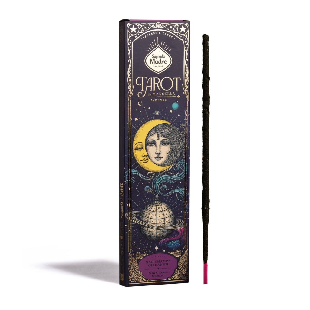Incienso Tarot de Marsella Nag Champa – Olibano Sagrada Madre. Varitas de incienso artesanal con aroma dulce y amaderado, ideales para meditación, relajación y purificación de espacios. Combustión uniforme y fragancia duradera para ambientes equilibrados y acogedores.