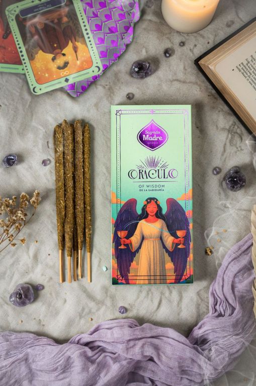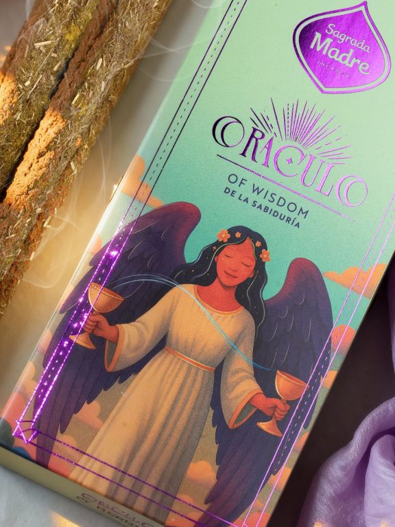 Un oráculo con 12 cartas de animales sagrados: cada caja contiene una carta sorpresa que trae consigo un mensaje único. Los sahumerios en su interior acompañan la experiencia, expandiendo el sentido con fragancias que elevan y sostienen.