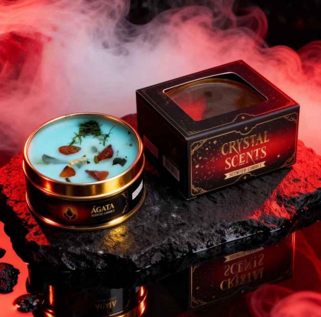 Vela mineral aromatizada premium · Inspirada en Ágata · Con mineral y hierbas