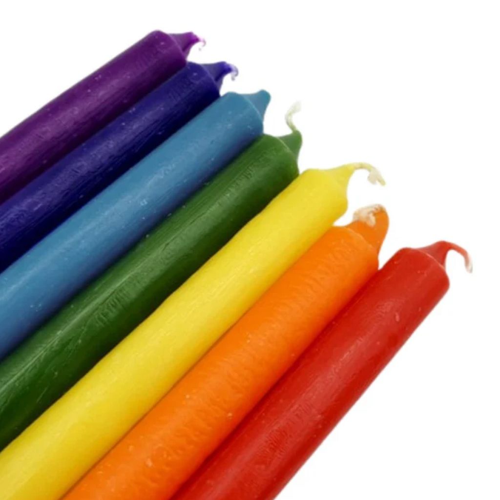 Velas teñidas en masa para rituales. Juego de 7 velas.